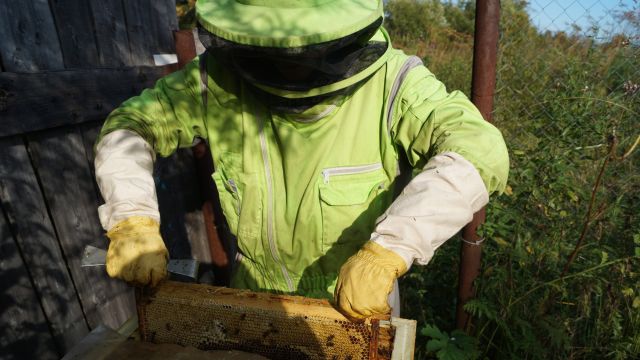 С 12 августа установилась тёплая погода — около 20 градусов и природа ожила. Надо сказать, что холод сработал как холодильник, все цветы и растения полностью остановили своё развитие и потепление встретили в том состоянии, в каком их оставил последний тёплый июльский день. Будто кто-то нажал на паузу. С 12-го августа взяток продолжился. Первый осмотр пчёл показал, что все семьи на пасеке израсходовали почти все запасы мёда и перги, кормовых запасов оставалось всего на 1-2 дня. Большое везение, что всё это безобразие не продлилось ещё несколько суток. Пчёлы вновь рванули в поле. Я уже не рассчитывал на какое-то существенное количество мёда, но человек только предполагает. До 24-го августа стояла шикарная медосборная погода, пчёлы трудились изо всех сил. Конечно, не все семьи смогли достигнуть силы в 3 корпуса, но что поделаешь. В конце августа я крайне удивился увидев в некоторых сильных семьях по 1,5-2,5 корпуса мёда. Уже во время откачивания, увидев цвет мёда, я понял, что, скорее всего, это сработали растения из семейства зонтичных, они оказались крайне холодостойкими. Спасибо дуднику, дягилю и всем подвидам этих растений 🙂 Во время августовского взятка мне удалось съездить на ежегодную конференцию пчеловодов Архангельской области в Устьянский район, где выступил с небольшим докладом. На устьянской медовой ярмарке «Медовая ссыпчина» архангельских пчеловодов со своими товарами можно было пересчитать на пальцах одной руки. В личных беседах многие пчеловоды говорили о том, что даже постоянным покупателям пришлось урезать заказы в 2-3 раза, на ярмарке им продавать было нечего. Очень похоже на то, что в южных районах области со взятком дело обстояло ещё хуже.
